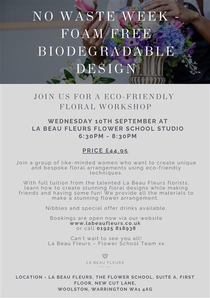 Address: La Beau Fleurs – The flower School, Suite A, First Floor, New cut Lane, Woolston Warrington WA1 4AG
