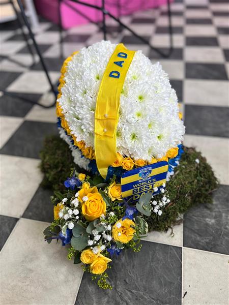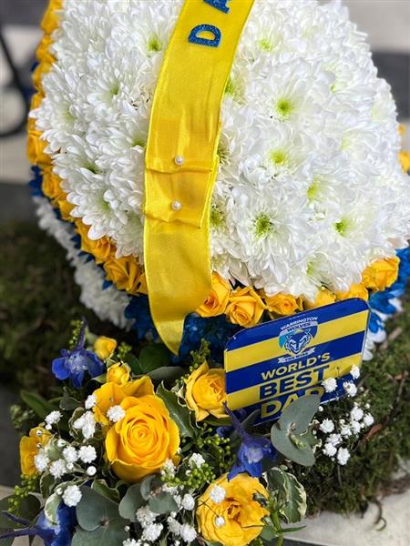This fabulous tribute can be lovingly crafted to any team specification - we create a lot of these for sports fans particularly those who loved our local team Warrington Wolves.